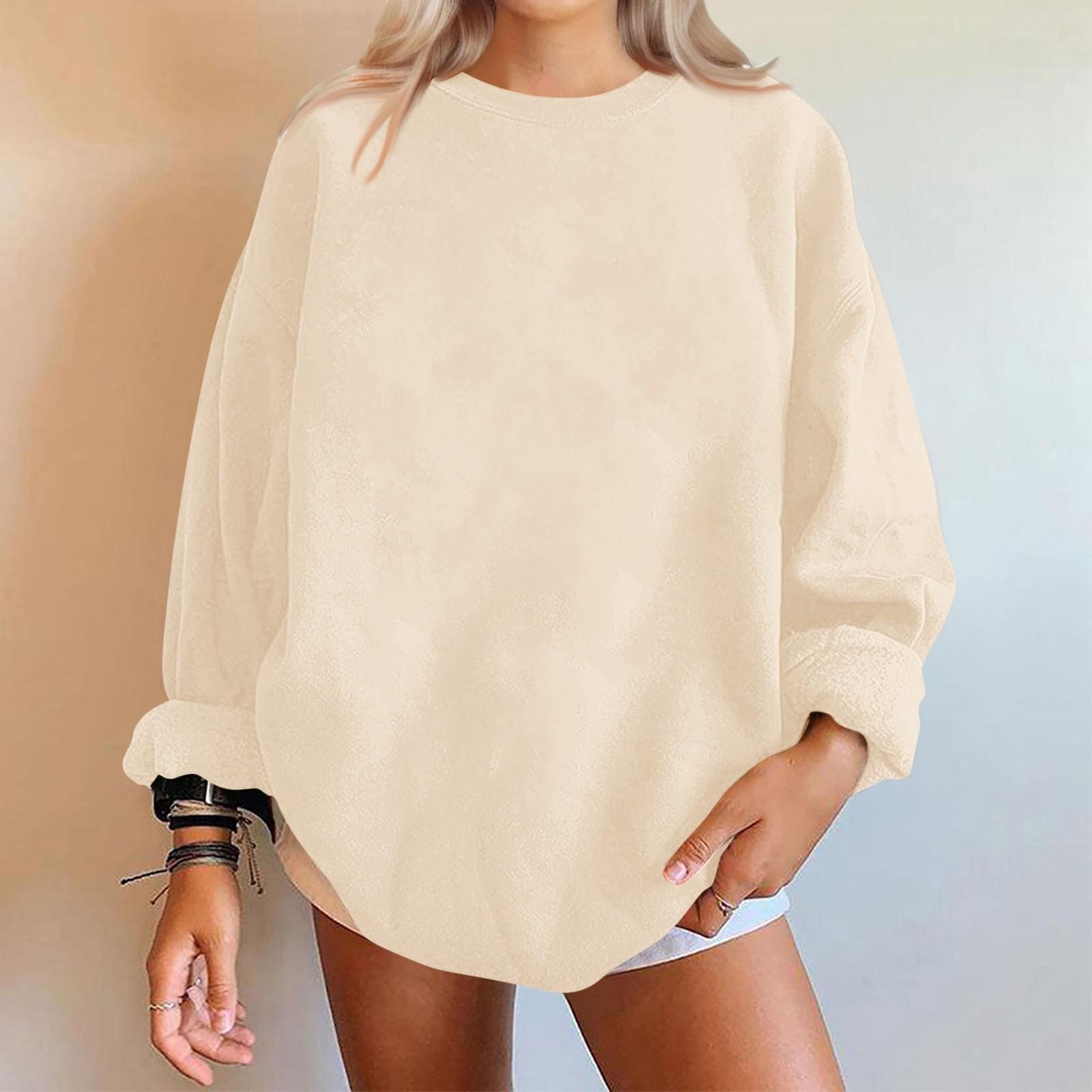 Женские повседневные модные однотонные толстовки с длинным рукавом и круглым вырезом, пуловер, топ L бежевый