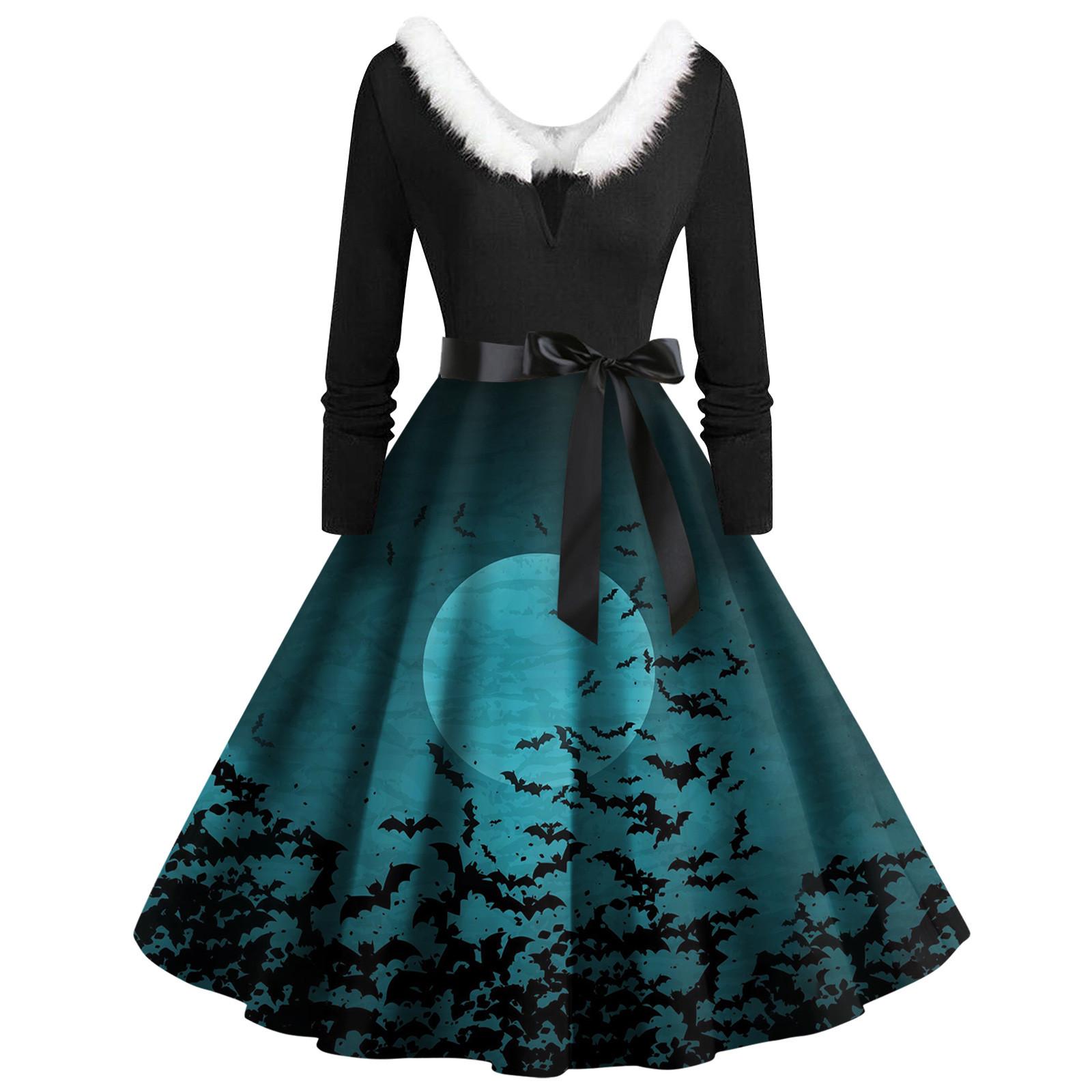 Женские повседневные модные платья с длинными рукавами и v-образным вырезом с принтом на Хэллоуин L