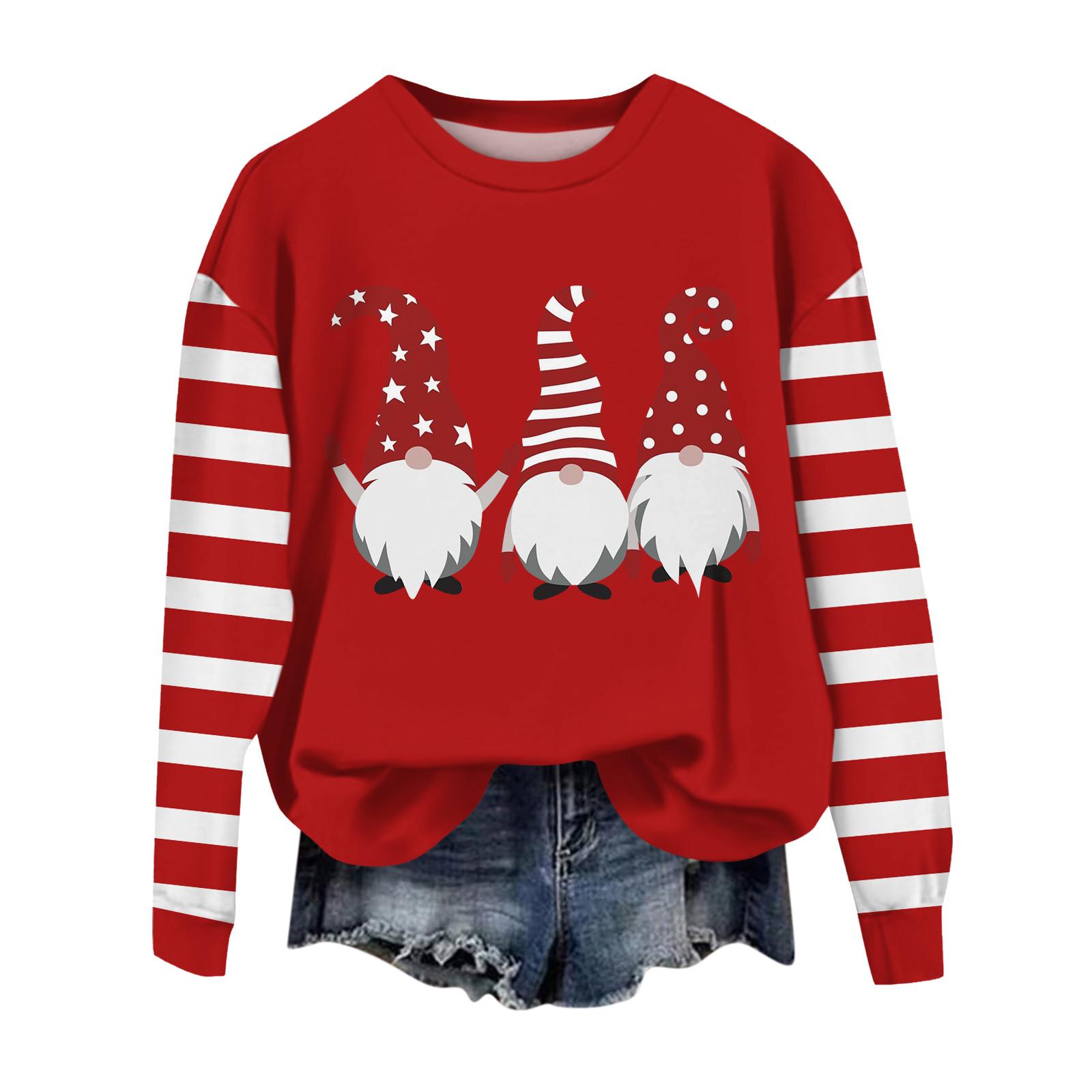 Женские повседневные модные принты с длинным рукавом и круглым вырезом, пуловеры с капюшоном M красный