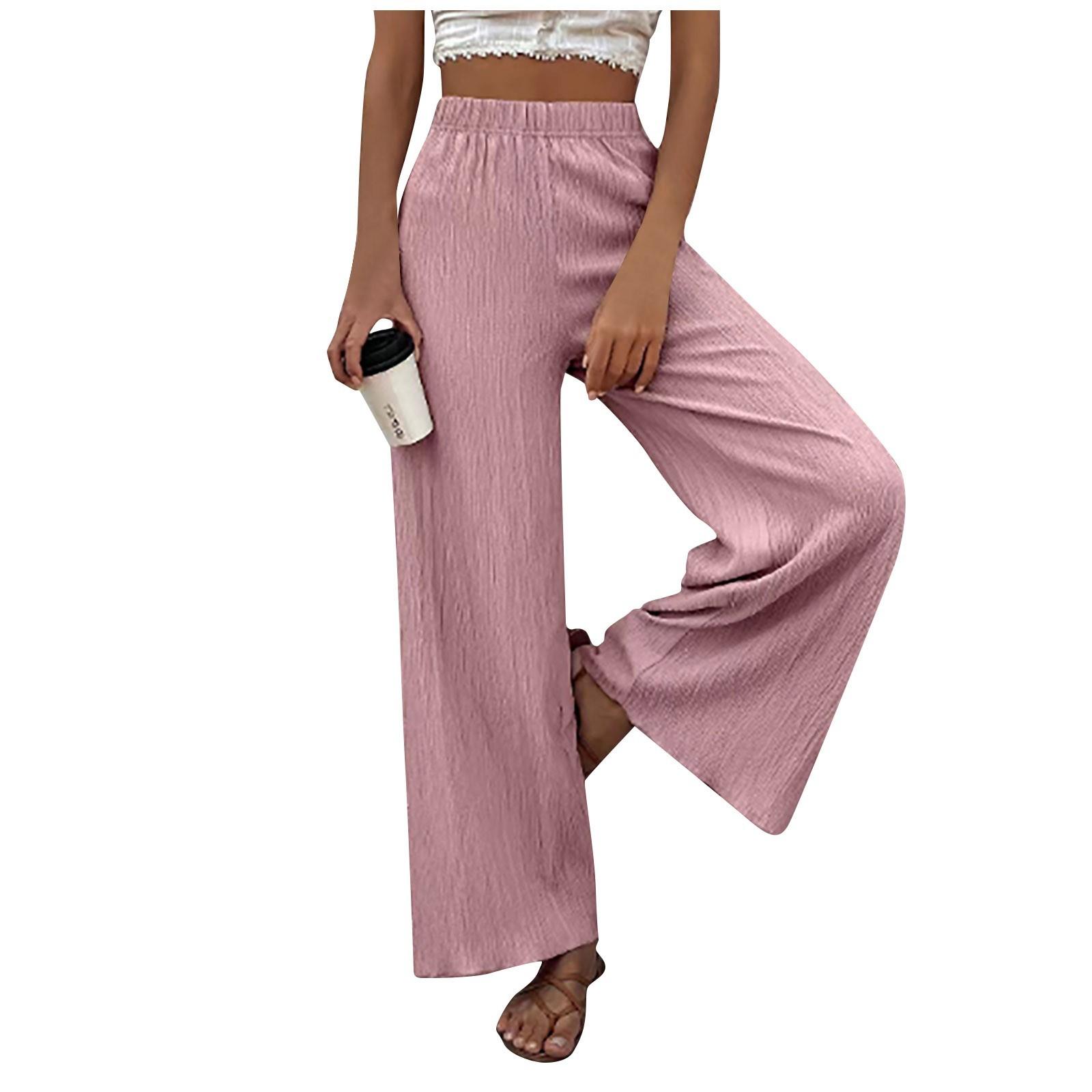 Женские повседневные модные сексуальные удобные крутые дышащие однотонные свободные брюки из хлопка и льна XL розовый
