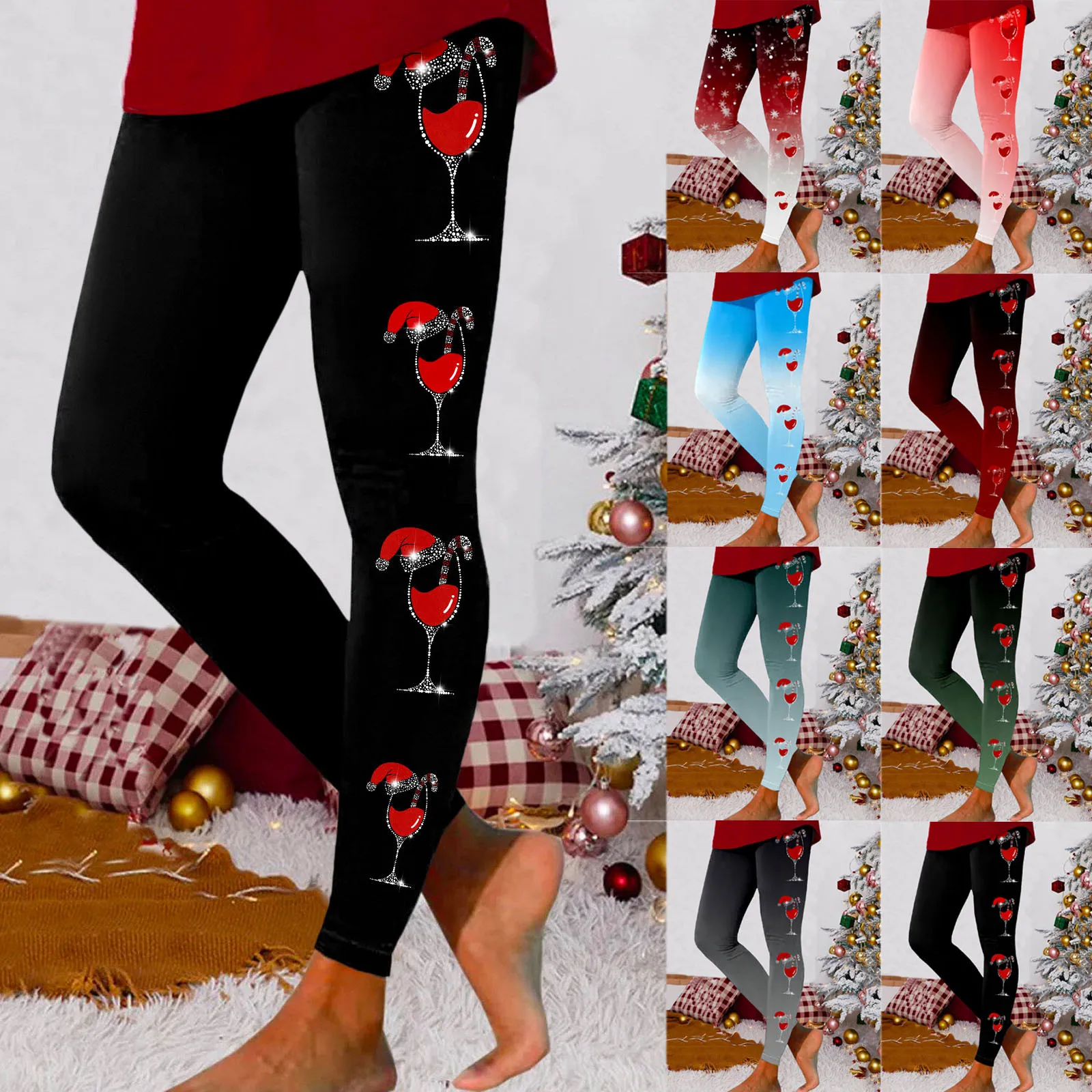 Женские повседневные модные спортивные Леггинсы с рождественским принтом, повседневные Леггинсы для йоги, хлопковые леггинсы с карманами