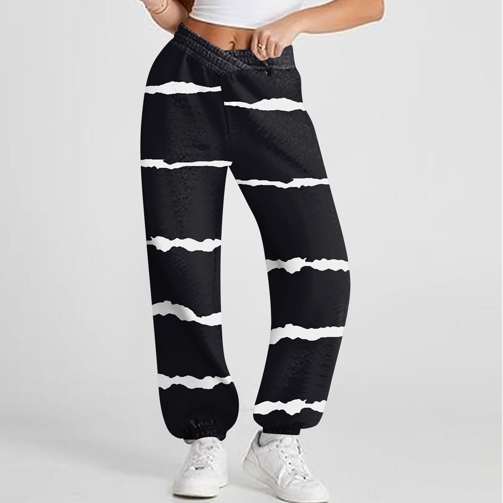 Женские повседневные модные спортивные штаны с принтом, спортивные штаны, брюки, эластичные брюки с завязками на талии L чёрный