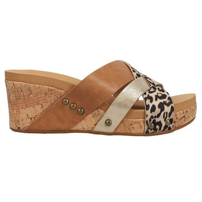 Женские повседневные сандалии на танкетке Corkys Amuse Wedge Размер 8 M 41-0112-LEOP, Коричневый, Corkys Amuse Wedge