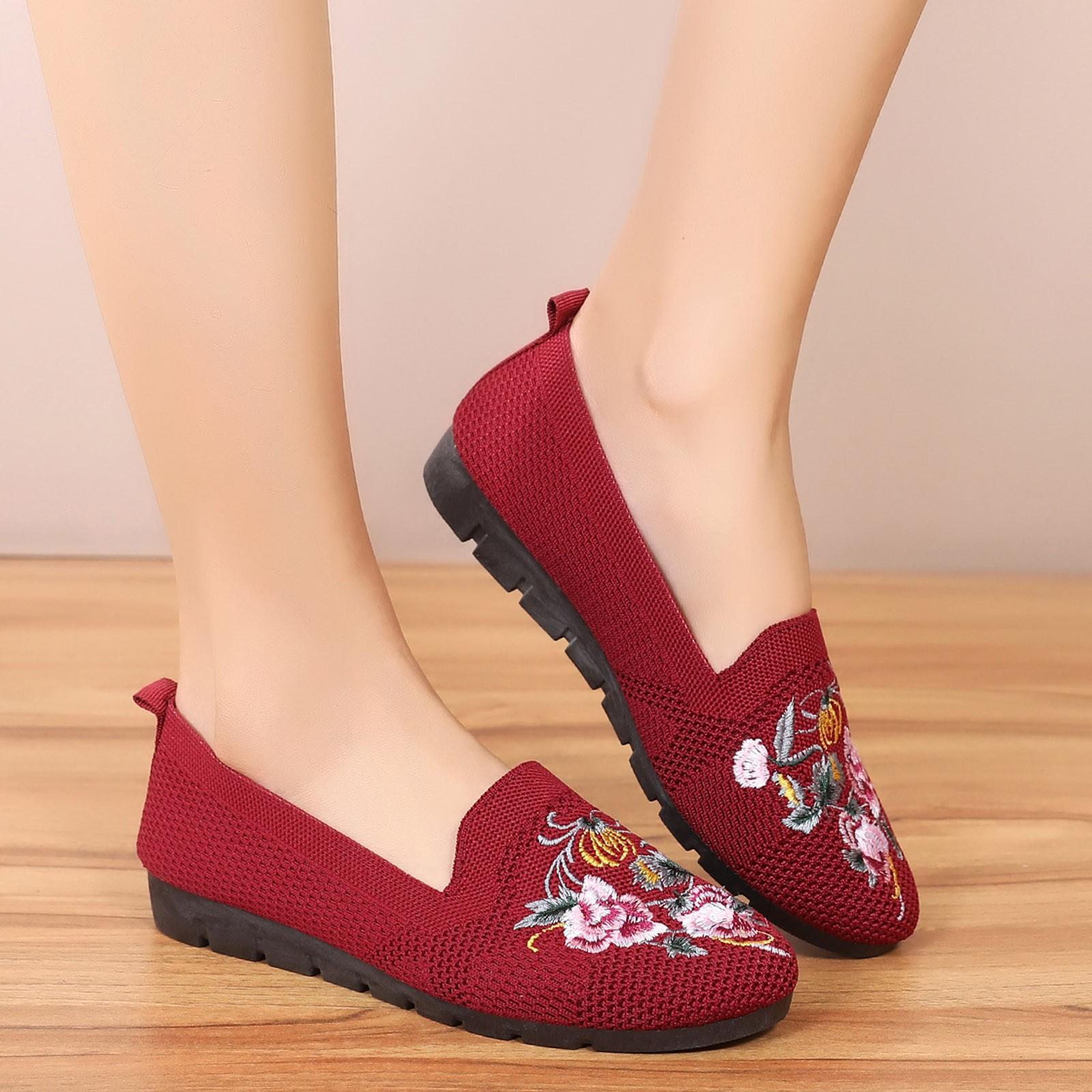 Женские повседневные сетчатые дышащие туфли без шнуровки на танкетке с круглым носком, туфли в горошек 40 красный
