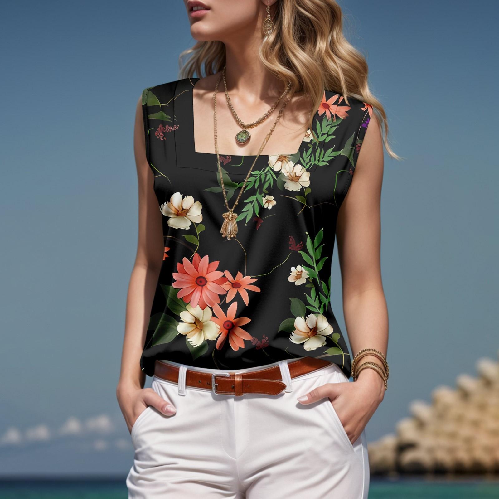 Женские повседневные туники, топы для ношения с леггинсами, летние рубашки без рукавов с принтами, майки XL красный