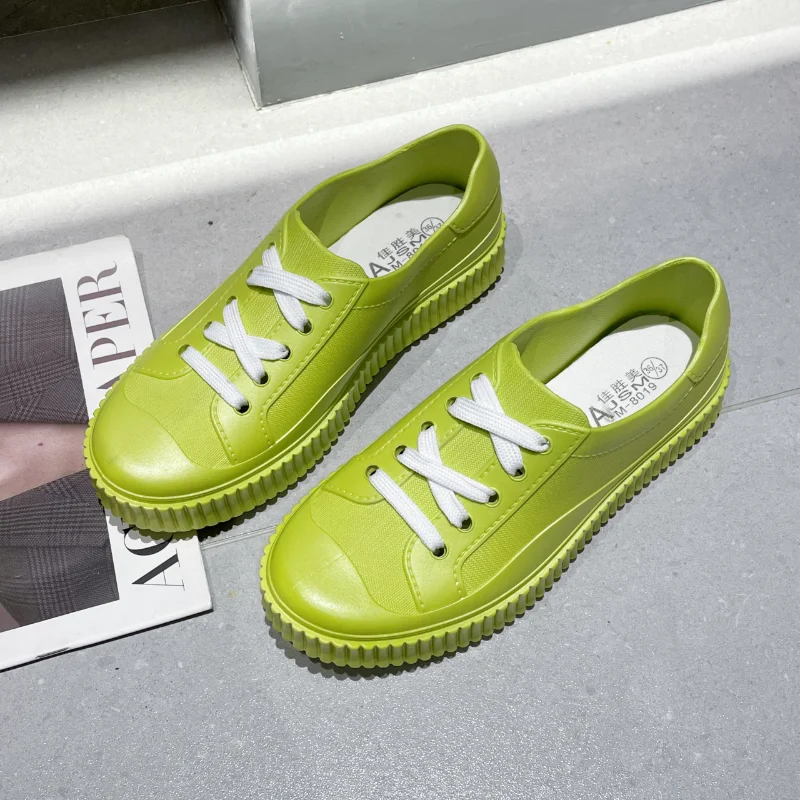 Женские повседневные туфли, сезон весна 2023, кроссовки со шнуровкой и низким верхом, водонепроницаемые женские резиновые сапоги, лаконичная Нескользящая Женская рабочая обувь