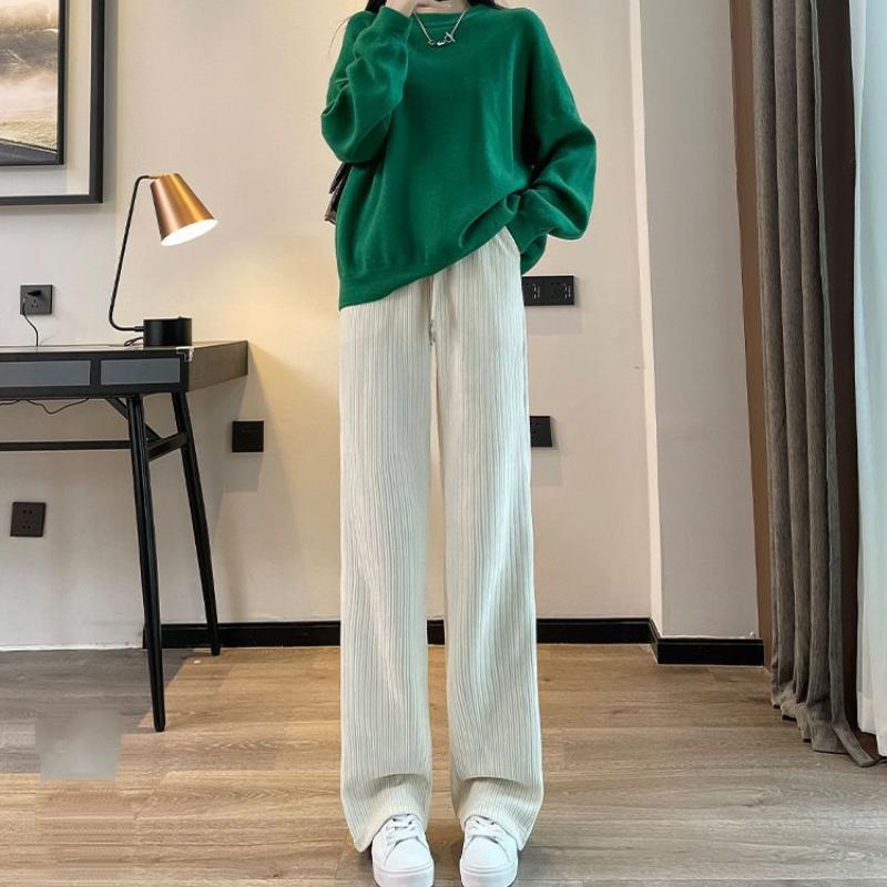 Женские повседневные широкие брюки, осенние тонкие модные свободные прямые брюки из синели с высокой талией, женский тренд, шикарный и элегантный M