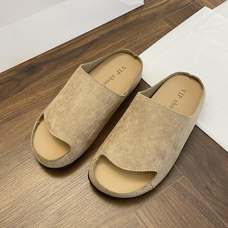 Женские полутапочки для улицы 2025 новая летняя толстая подошва с увеличением высоты модные шлепанцы на одно слово с открытым носком, крутые шлепанцы 40
