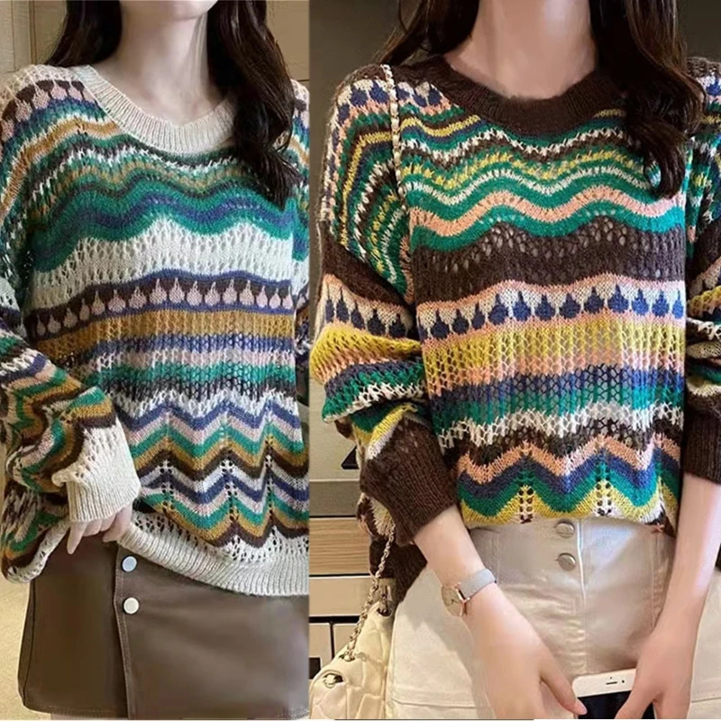 Женские полые свободные пуловеры, свитер, повседневные вязаные рубашки с длинными рукавами, блузка Y2k