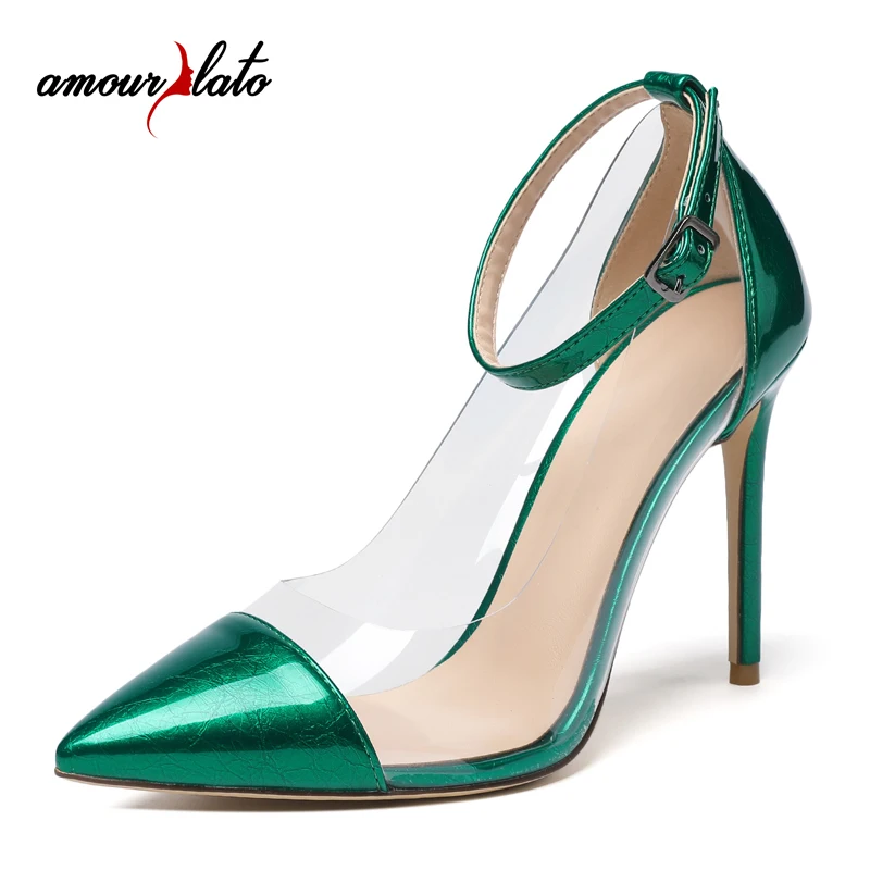 Женские прозрачные туфли-лодочки Amourplato на высоком каблуке, прозрачные туфли из ПВХ с ремешком на щиколотке и острым носком на шпильке