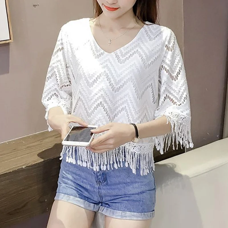 Женские прямые свободные пуловеры с V-образным вырезом и коротким рукавом