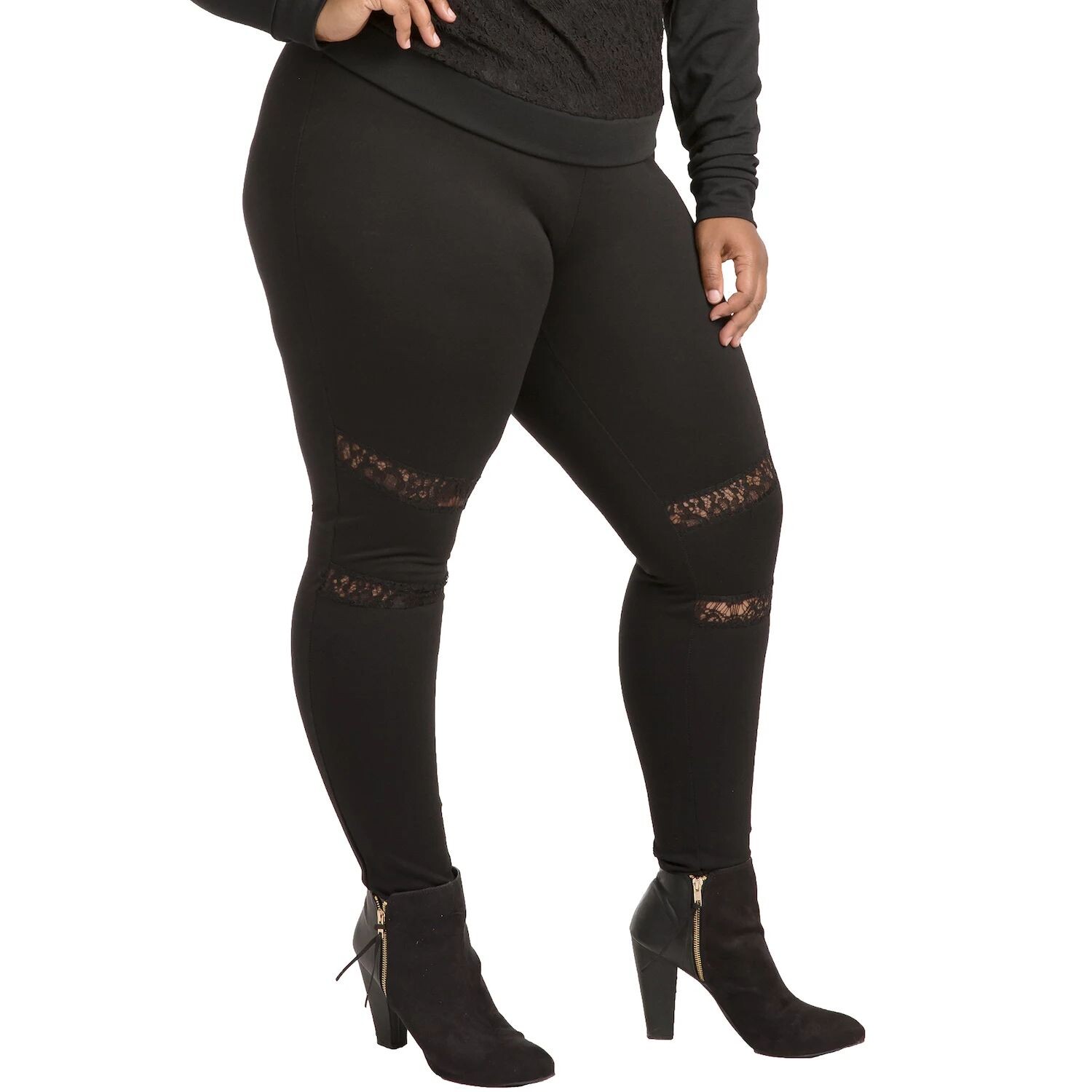 Женские пышные леггинсы с кружевными вставками Poetic Justice больших размеров на понте Poetic Justice, черный