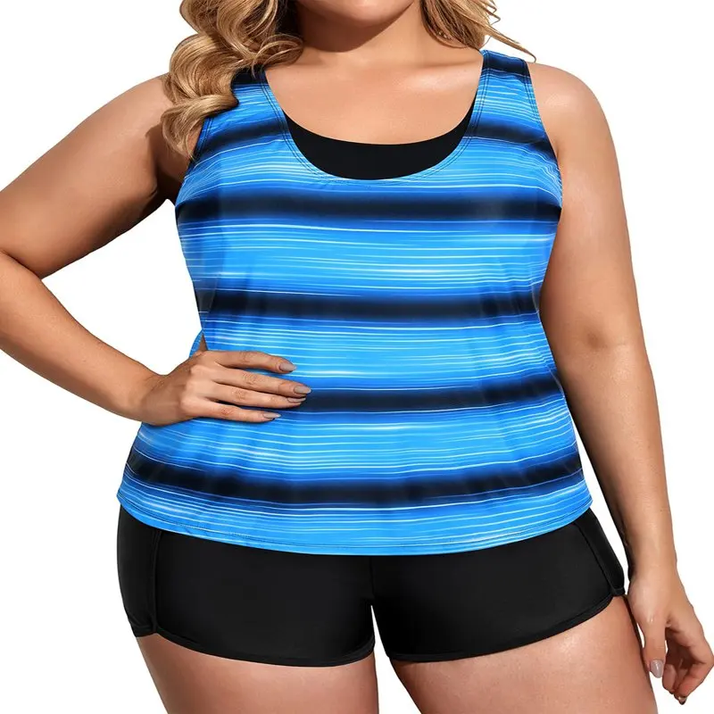 Женские размера плюс купальники из 3 частей, укороченные танкини, купальные костюмы с накидкой, спортивные купальники с принтом