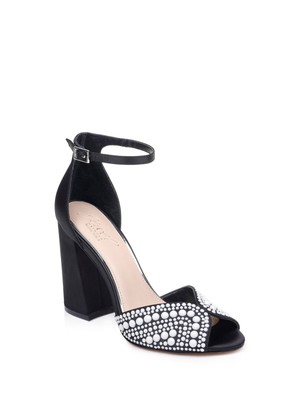 Женские расклешенные сандалии BADGLEY MISCHKA с черным жемчугом Serenity Almond Toe, Черный, JW3007