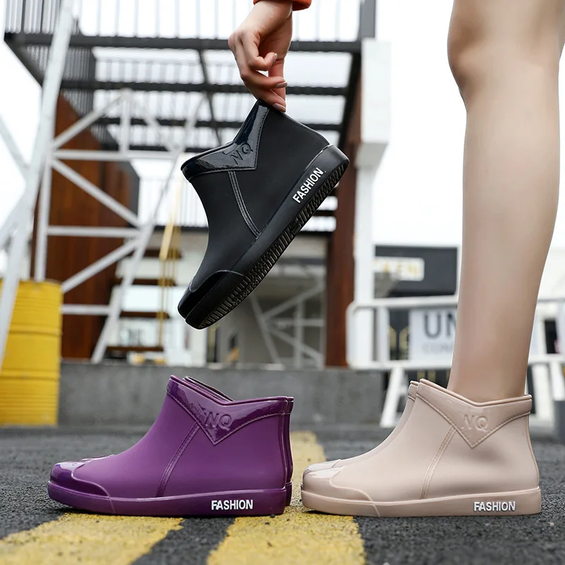 Женские резиновые ботинки, водонепроницаемые полусапожки, плоская подошва, осень