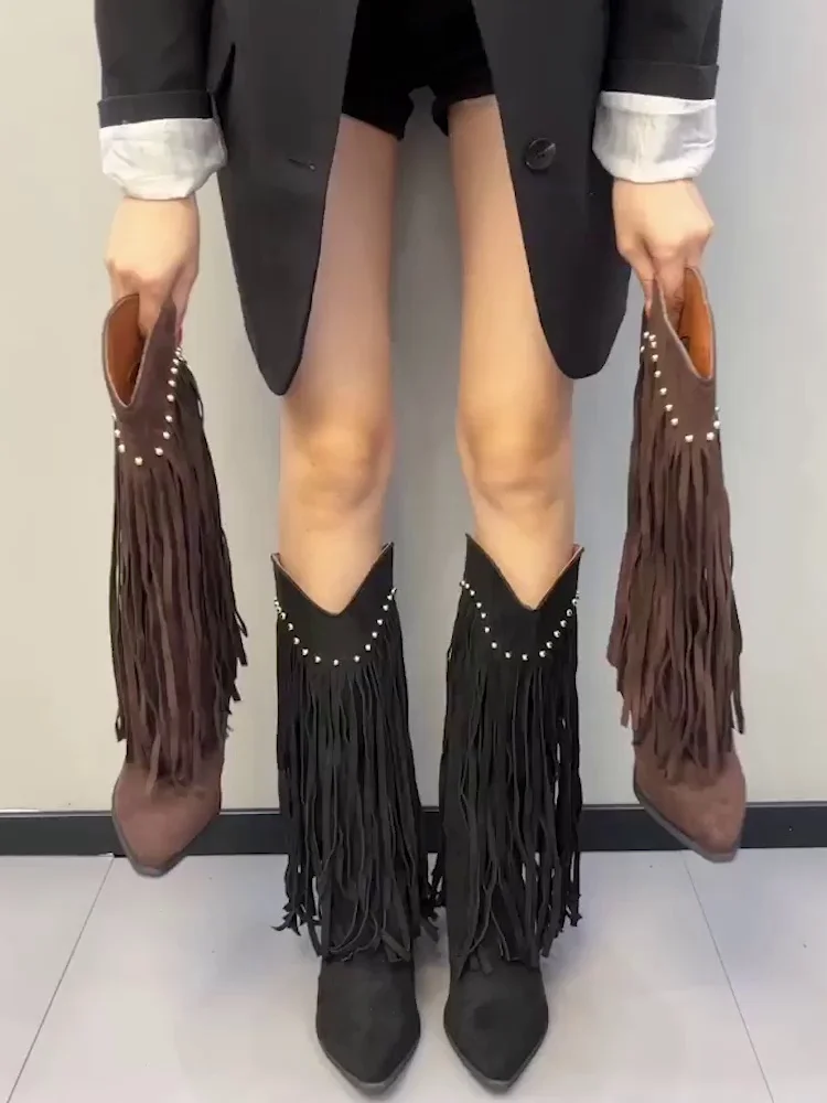 Женские резиновые сапоги, привлекательные высокие ковбойские сапоги на высоком каблуке, с острым носком