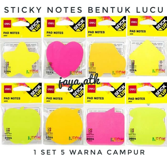 Unik STICKY NOTES BENTUK LUCU STICK NOTE MEMO TEMPEL BENTUK LUCU WARNA 76mm Berkualitas