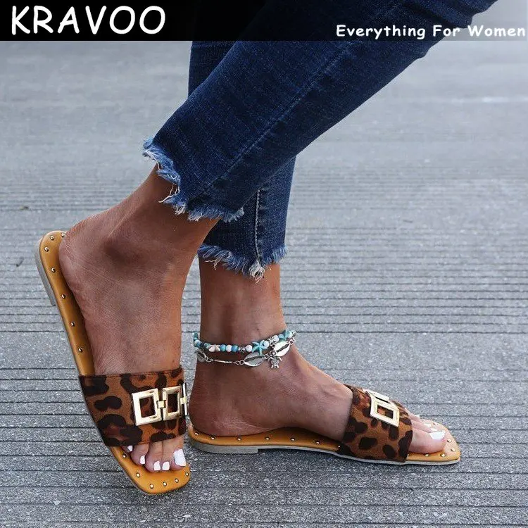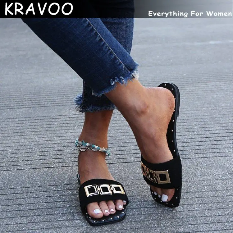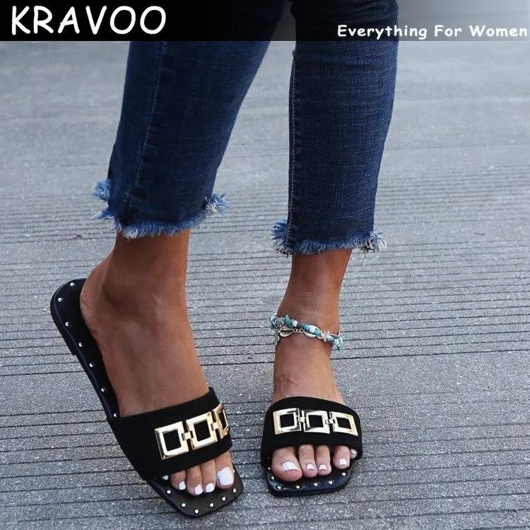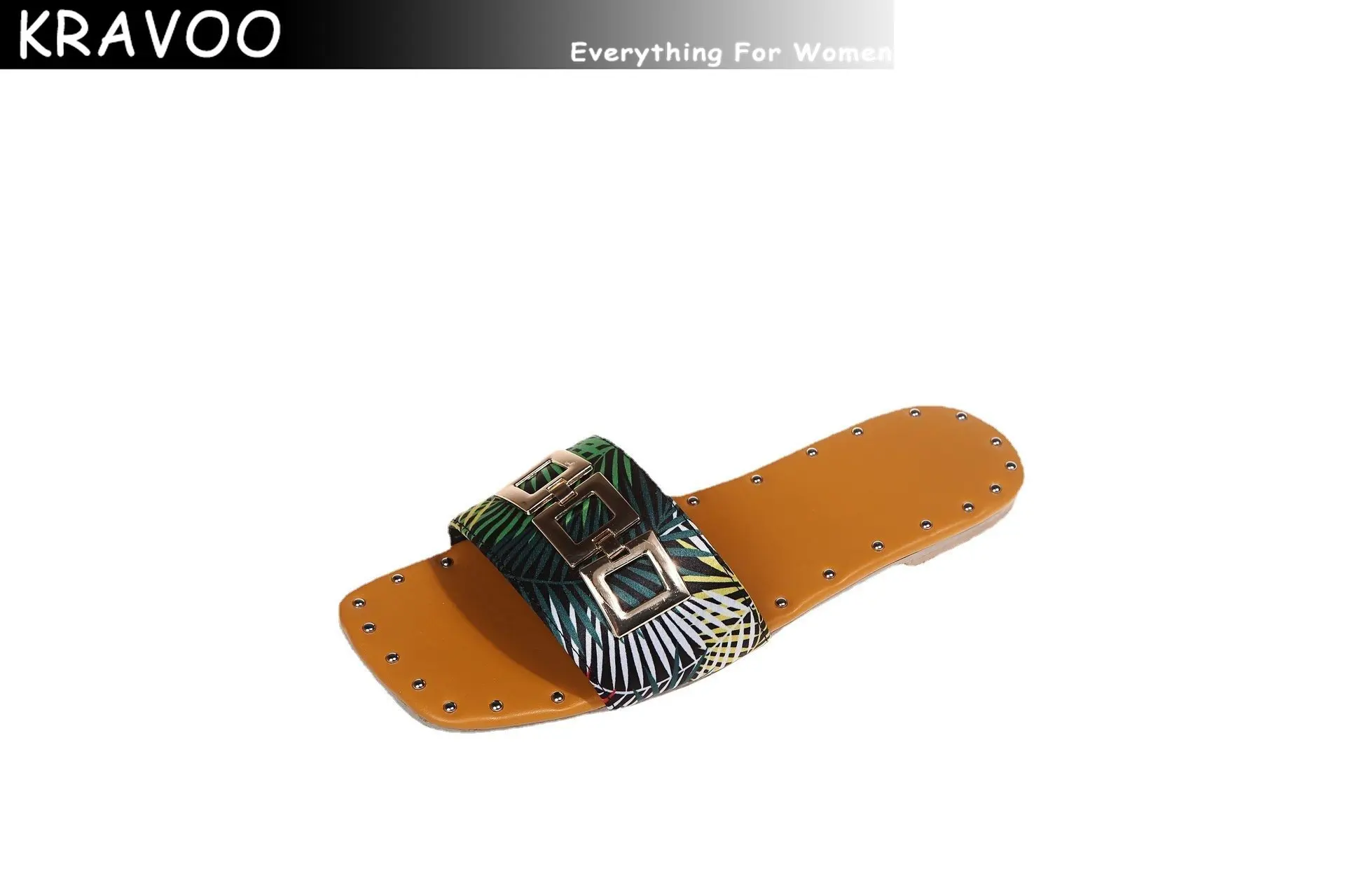 Женские римские шлепанцы KRAVOO с металлической пряжкой, Пляжная Летняя женская обувь, шлепанцы, женские сандалии, женские сандалии 2023