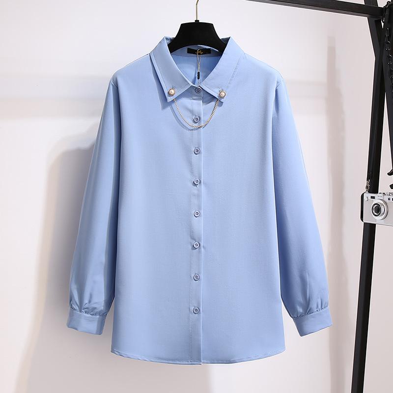 Женские рубашки больших размеров на весну и осень, свободные рубашки с длинными рукавами, модные топы 5XL синий