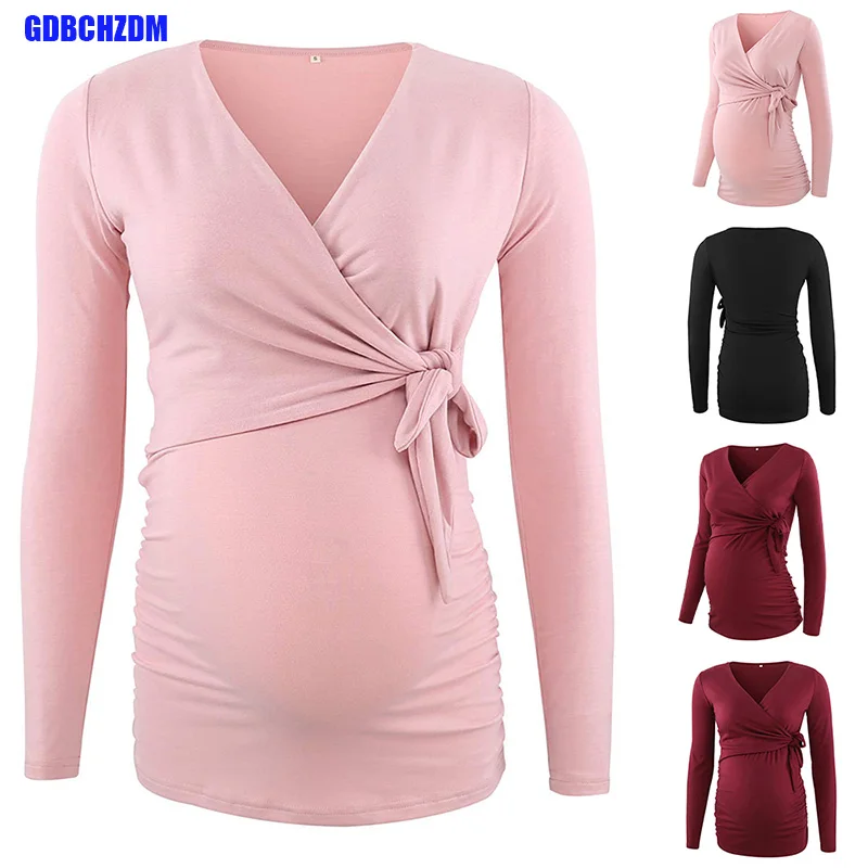 Женские рубашки с длинным рукавом, Одежда для беременных, топы для грудного вскармливания, блузка для беременных