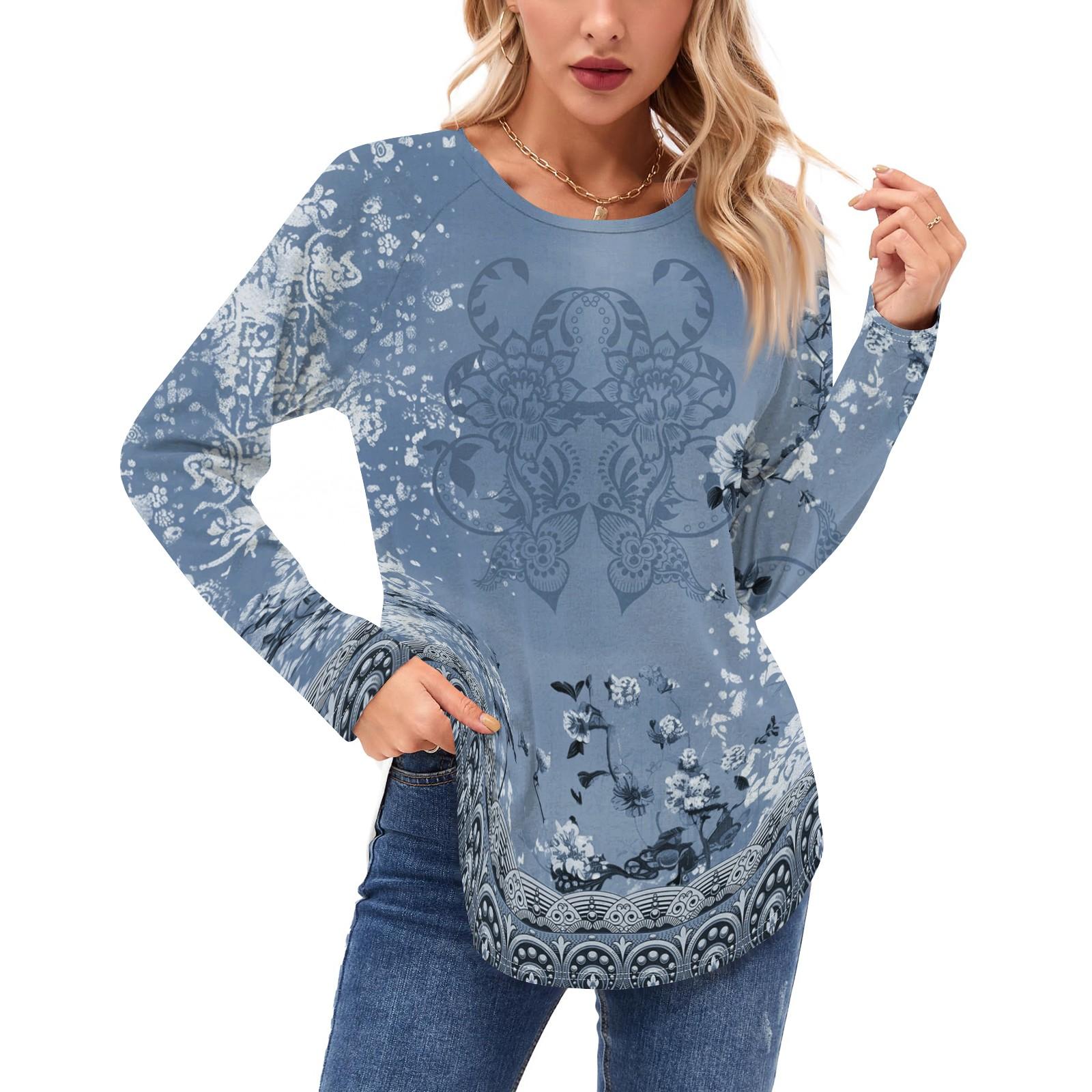 Женские рубашки с длинным рукавом, повседневные модные туники с цветочным принтом, топы с круглым вырезом, базовая свободная футболка XL арбуз красный