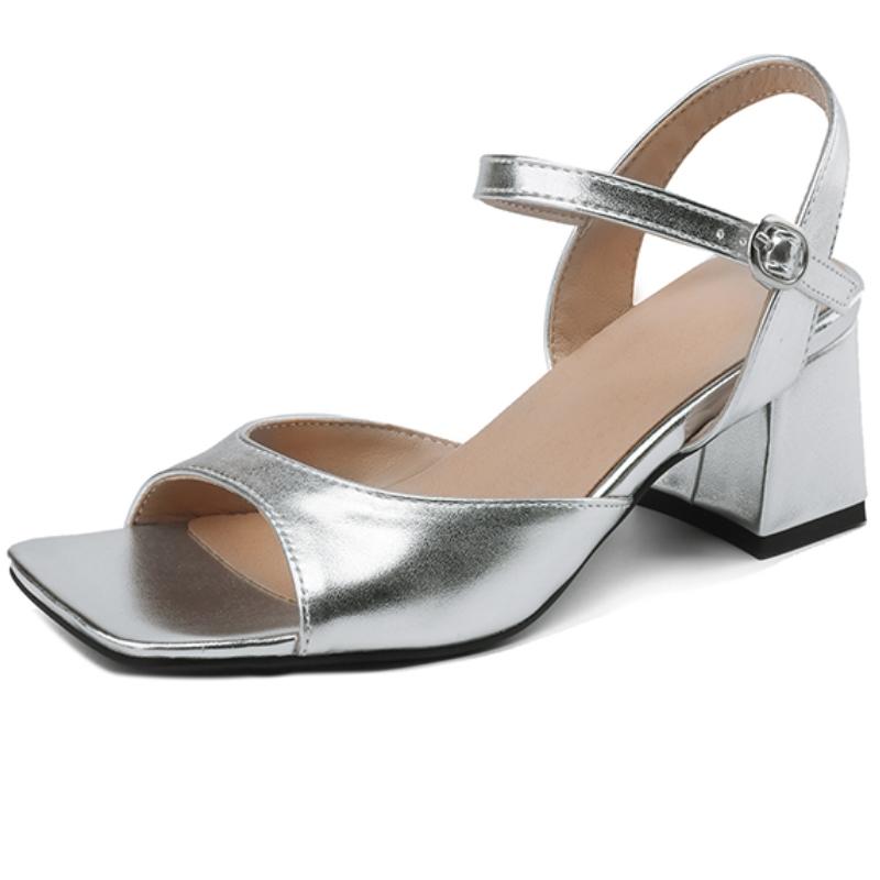 Женские сандалии Летняя обувь Элегантные средние каблуки Телесные Серебристые Черные Туфли для вечеринок Дизайнерские шлепанцы Обувь для девочек Большого размера 35 серебряный