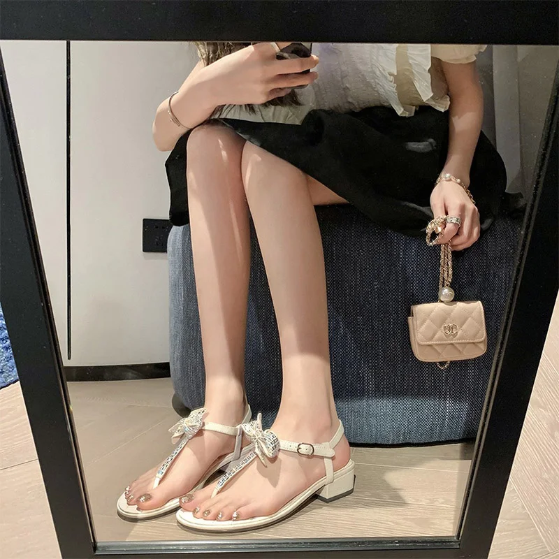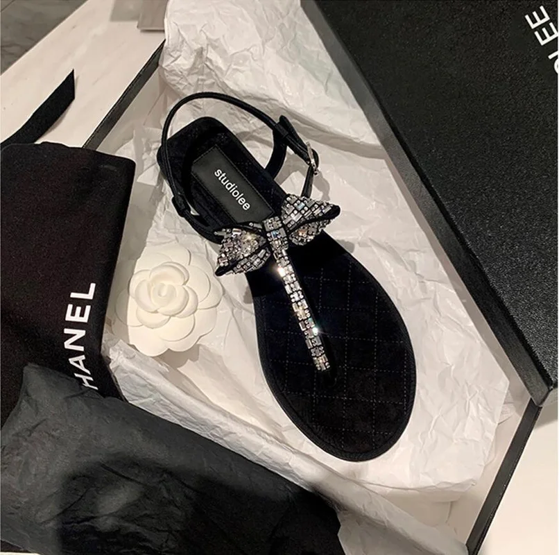 Женские сандалии, Новинка лета 2022, пляжные сандалии с бантом и открытым носком, на плоской подошве, женские летние сандалии