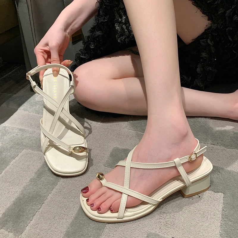 Женские сандалии-гладиаторы на толстом каблуке, модные уличные сандалии с клипсой, Новинка лета 2023