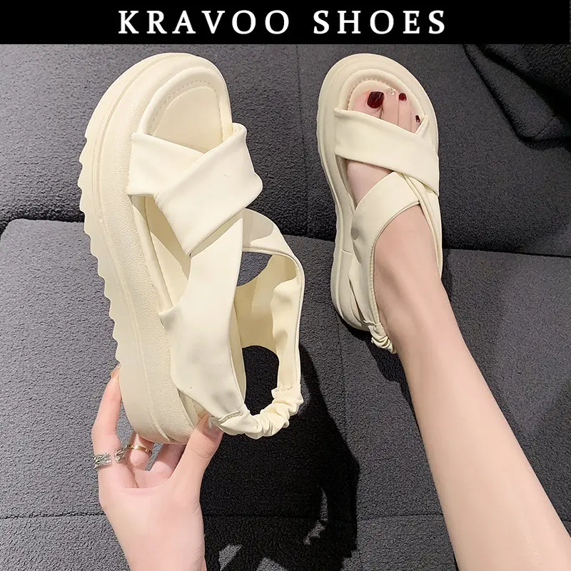 Женские сандалии из ПУ кожи KRAVOO, повседневные однотонные пляжные модные сандалии с пряжкой и открытым носком, на резиновой подошве, лето 2023