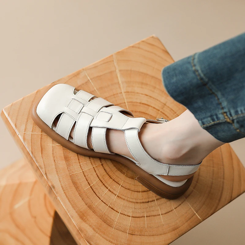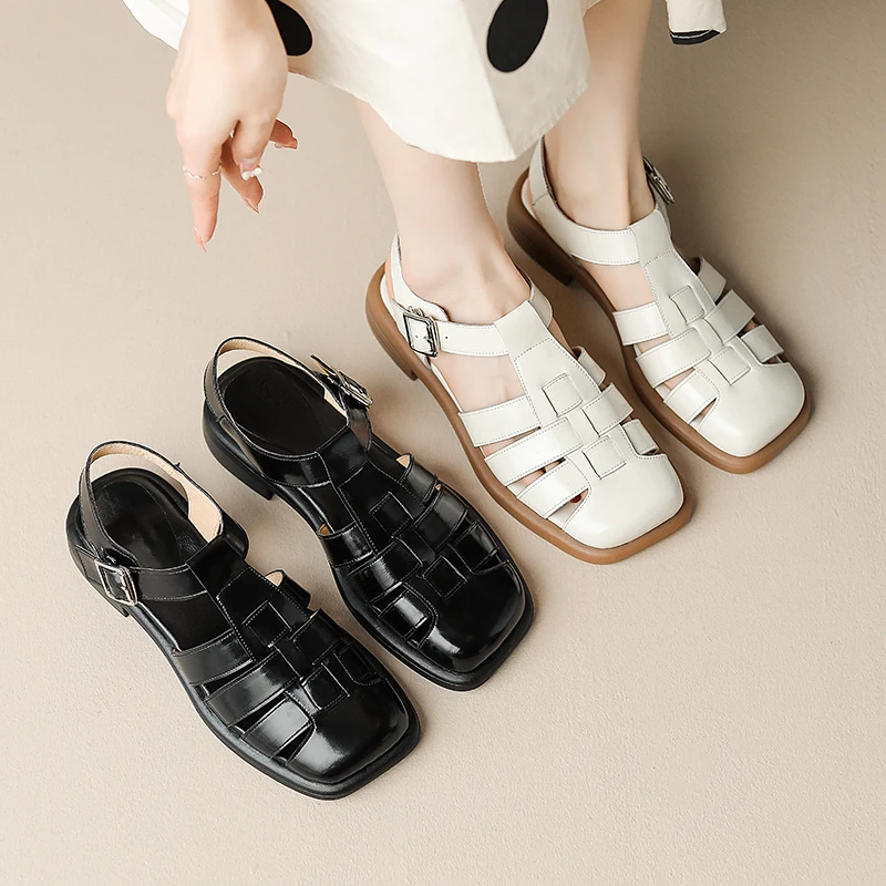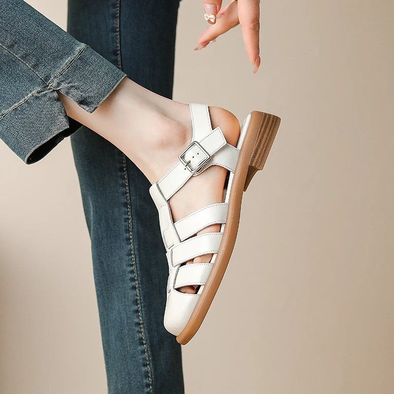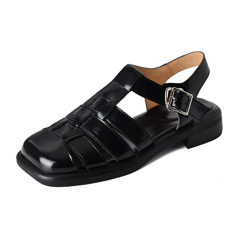 Женские сандалии из натуральной телячьей кожи, с Т-образной пряжкой, 22-2023 см