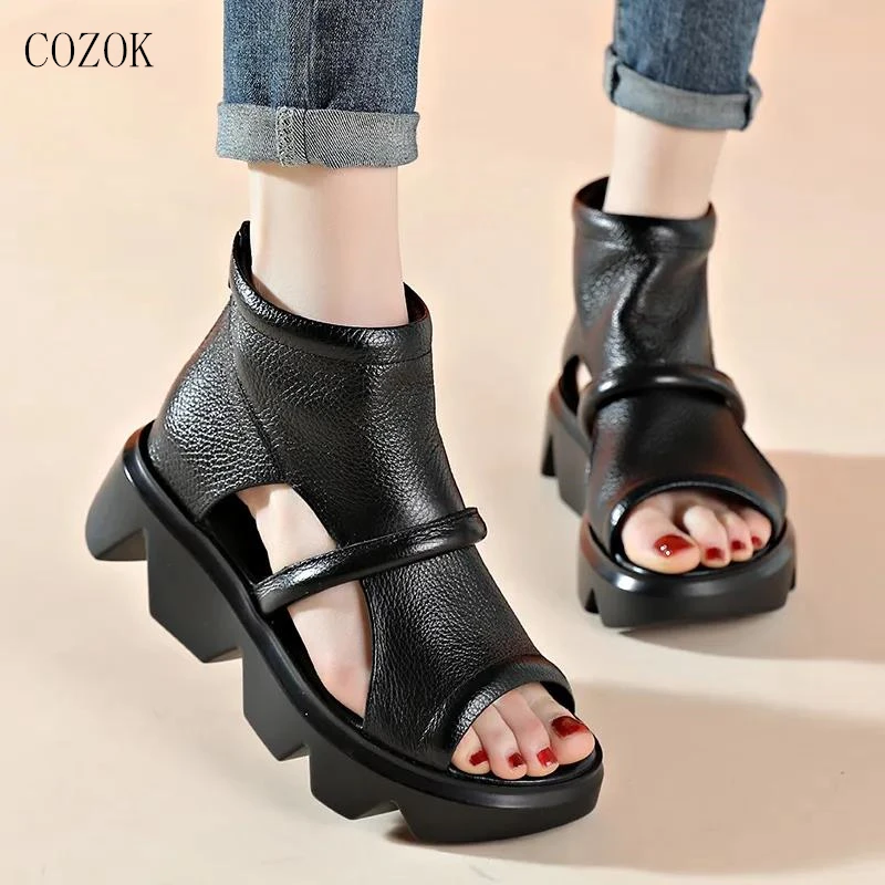 Женские сандалии на плоской платформе, римские сандалии, кожаные сандалии, летние сандалии с открытым носком, женские летние сандалии 2022