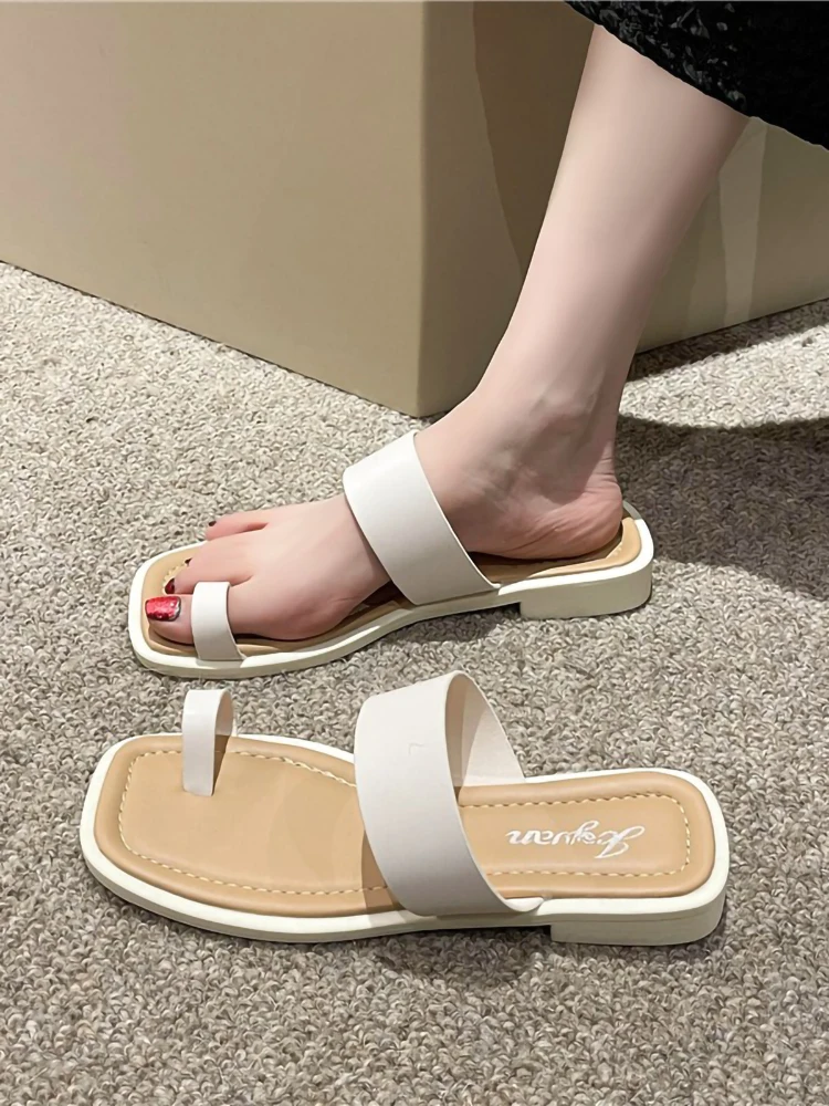 Женские сандалии на плоской подошве, мягкие пляжные шлепанцы из искусственной кожи с квадратным носком, в римском стиле, лето 2023