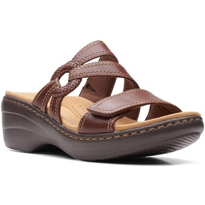 Женские сандалии на танкетке Clarks Merliah кораллово-коричневого цвета 7 Medium (B,M) BHFO 8290, Dark tan leather, Merliah Coral
