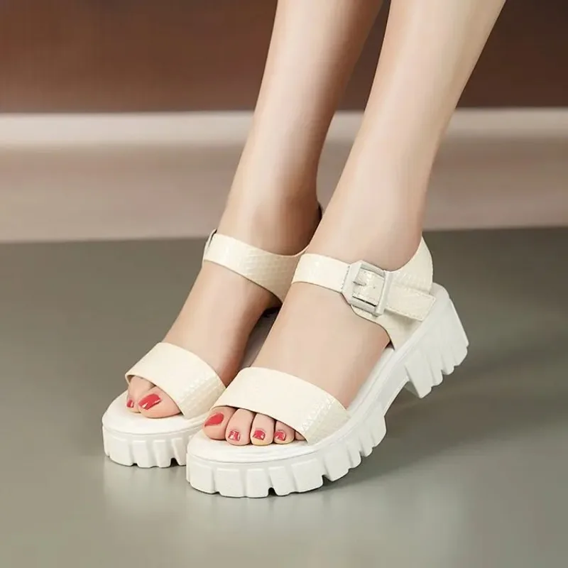 Женские сандалии на толстой подошве, повседневные Босоножки с открытым носом и пряжкой, лето 2023