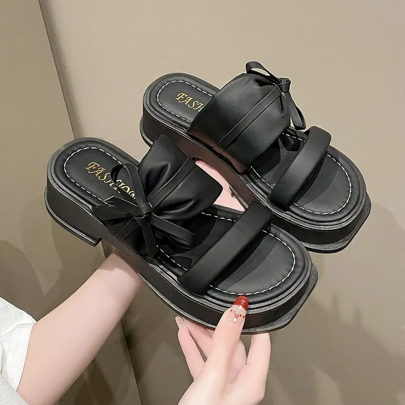 Женские сандалии с юбкой, римские сандалии на платформе, квадратный носок, открытый носок, летняя пляжная обувь, корейский стиль, 2024