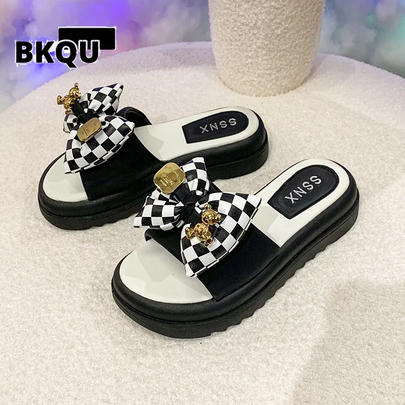 Женские сандалии и тапочки, Новинка лета 2023, круглые сандалии на толстой подошве, модная пляжная обувь в римском стиле с бантом