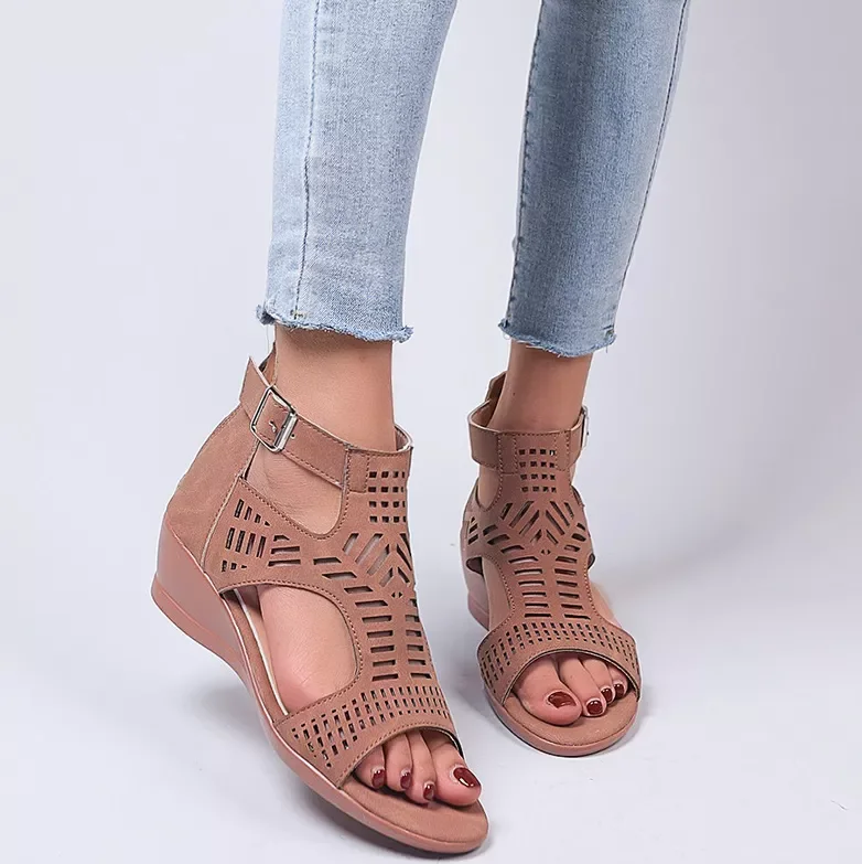 Женские сандалии 2021 на высоком каблуке с перфорацией и круглым носком на молнии