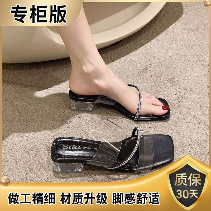 Женские сандалии 2025 новая летняя нишевая дизайнерская модель с толстыми каблуками и крутыми шлепанцами, носить хрустальные прозрачные туфли на высоком каблуке 40