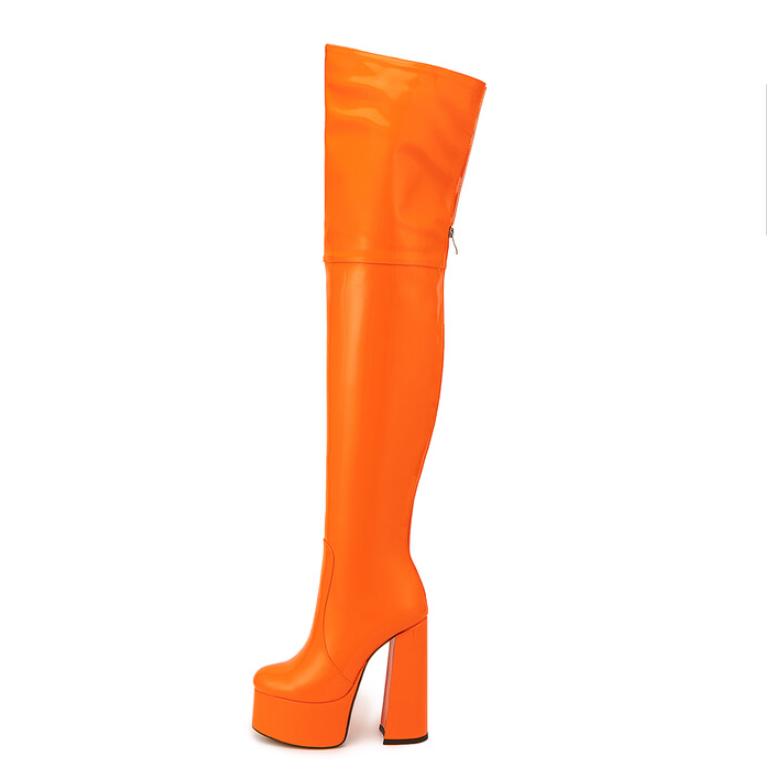 Женские сапоги выше колена на платформе, сексуальные зимние сапоги до бедра, розовые, черные, длинные, для вечеринок, белые, танцевальные, стриптизерш, женские 36 оранжевый