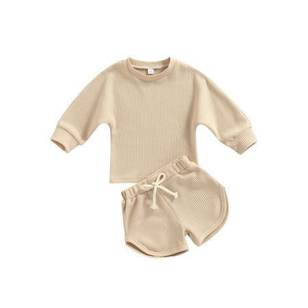 TheFound Casual Kids Girls Boys 2pcs Clothes Solid Long Sleeve Pullover Sweatshirt Tops+Elastic Shorts Sets