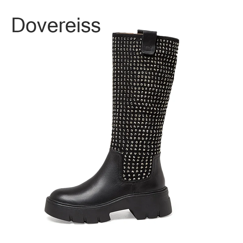 Женские сапоги до колена с заклепками, водонепроницаемые сапоги из натуральной кожи на массивном каблуке и платформе, зима 2022