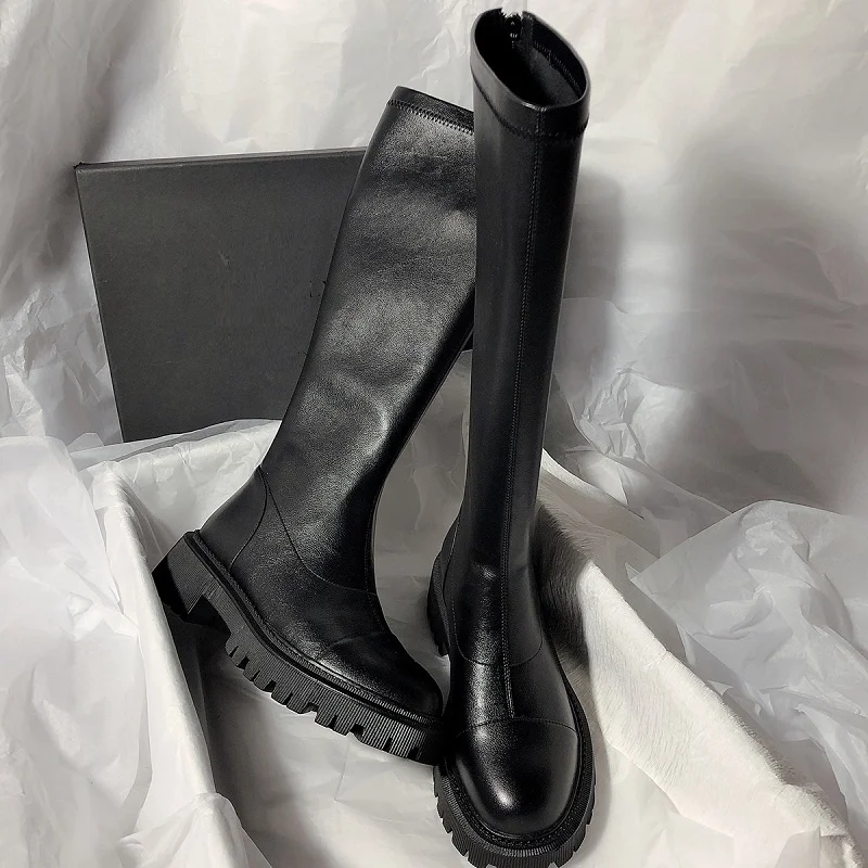 Женские сапоги до середины икры для верховой езды из стрейчевой ткани женские сапоги на молнии модная зимняя обувь botas mujer