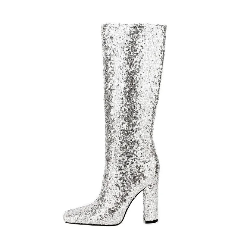 Женские сапоги на квадратном каблуке, без застежки, с квадратным носком