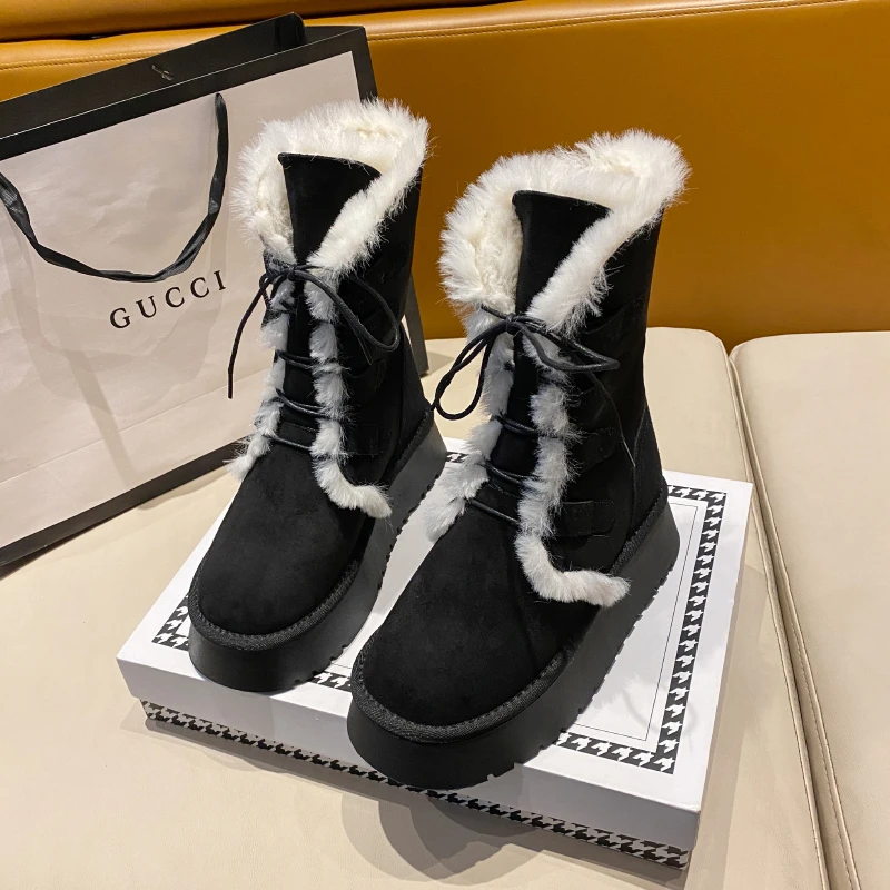 Женские сапоги на платформе до середины икры, зимние теплые сапоги с коротким плюшем для снежной погоды, женские модные повседневные сапоги на плоской подошве со шнуровкой, 2024