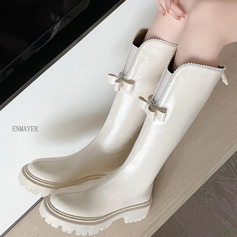 Женские сапоги с бантом ENMAYER, зимние длинные сапоги из натуральной кожи на необычном каблуке, размер 40, 2023
