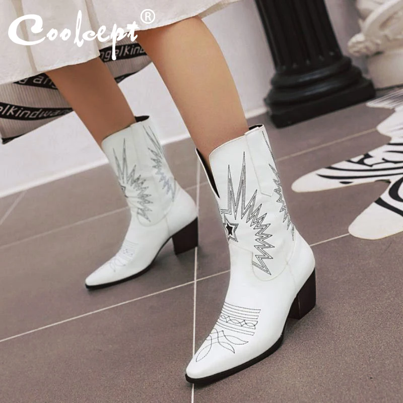 Женские сапоги Coolcept, зимние короткие сапоги до середины икры, на высоком каблуке, с острым носком, размера плюс