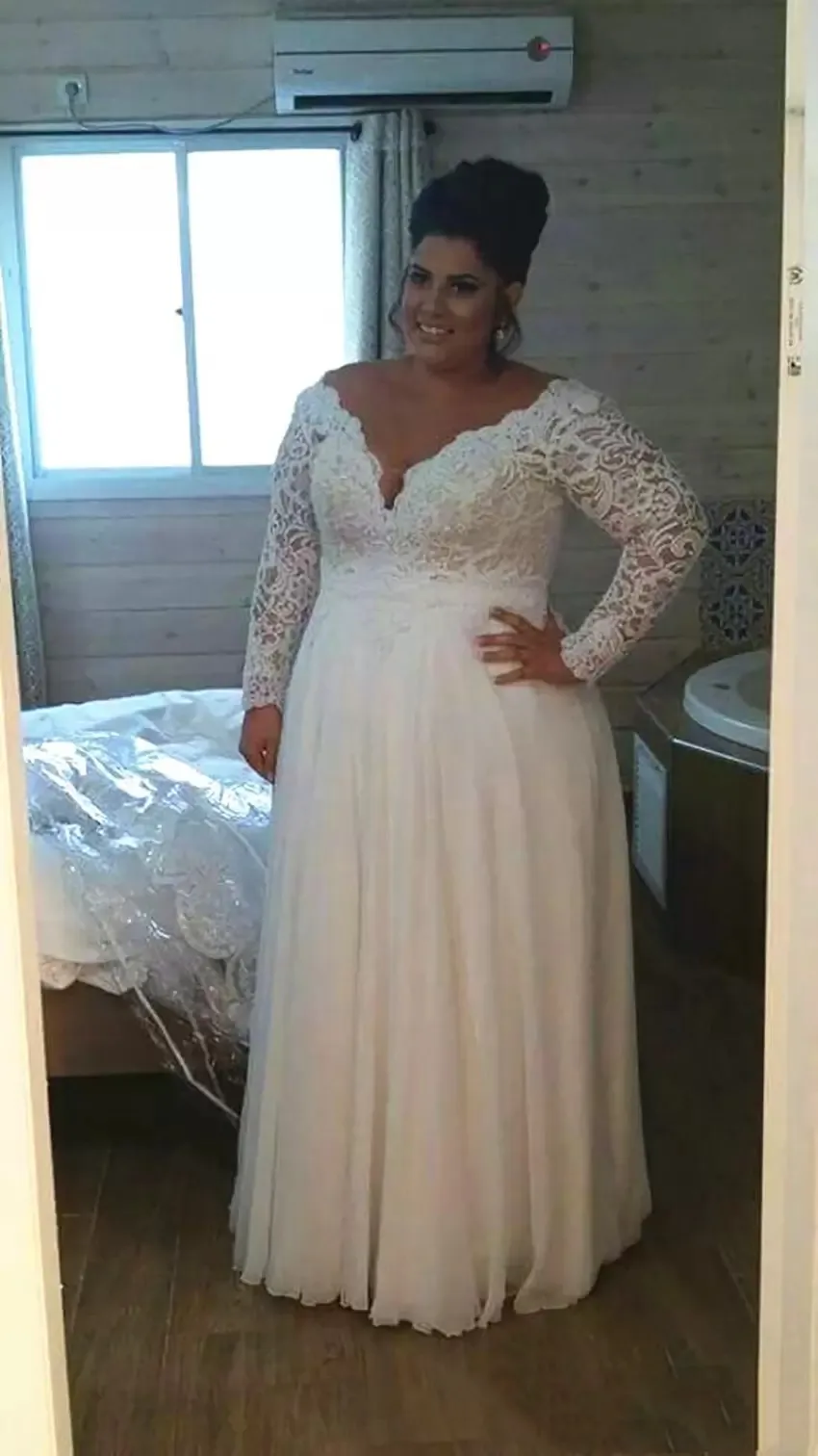 Женские свадебные платья, Кружевной Топ с длинным рукавом и глубоким V-образным вырезом
