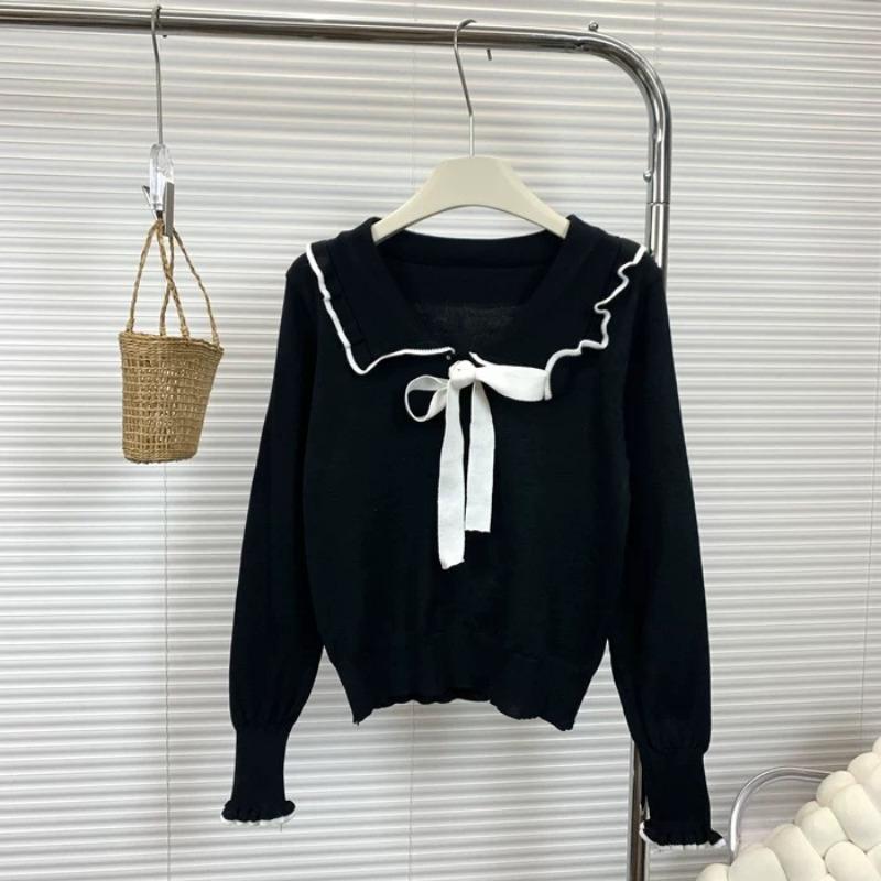 Женские свитера, женский вязаный топ с кукольным воротником, осенне-зимний пуловер XL чёрный