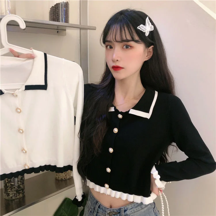 Женские свитера, кардиган, вязаный кардиган из ледяного шелка, нежный жемчужный пуловер с длинным рукавом, короткий топ с кладином, женские ...