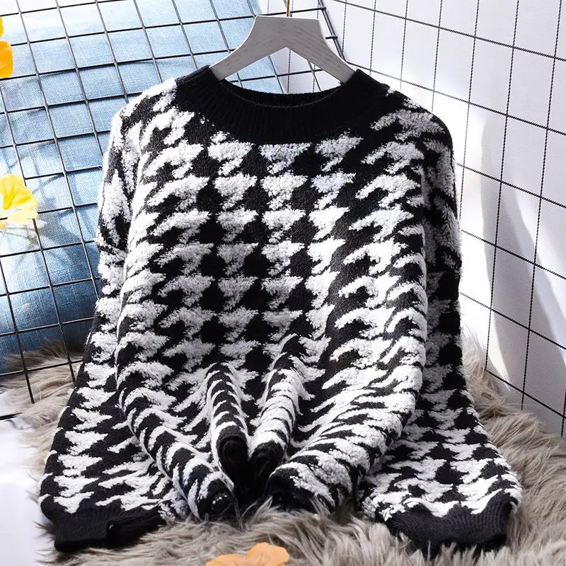 Женские свитера с принтом, Модные свободные вязаные пуловеры с круглым вырезом и длинными рукавами в Корейском стиле, осень 2023, Женская шикарная уличная одежда Q67